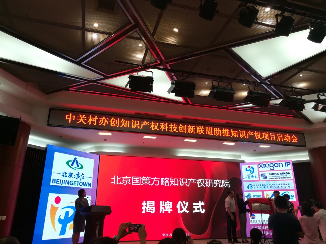 會議進行第三階段,舉行了北京國策方略知識產權研究院揭牌儀式并且院長發表講話。北京國策方略知識產權研究院是由北京市知識產權局作為業務主管單位,經北京市民政局批準成立的民辦非企業的非營利性社會組織。研究院的宗旨是“服務企業創新發展,聚集知識產權資源,構建保護服務體系,建立知識產權投融資新模式、打造知識產權支撐創新技術產業化服務新鏈條”。