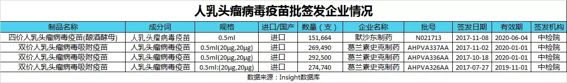 今年的人乳頭瘤病毒疫苗簽發(fā)情況如下圖所示:葛蘭素史克 2 價(jià)簽發(fā) 836,730 份,最早簽發(fā)時(shí)間是今年 7 月,相隔 4 月后,默沙東 4 價(jià)簽發(fā) 151,664 份。