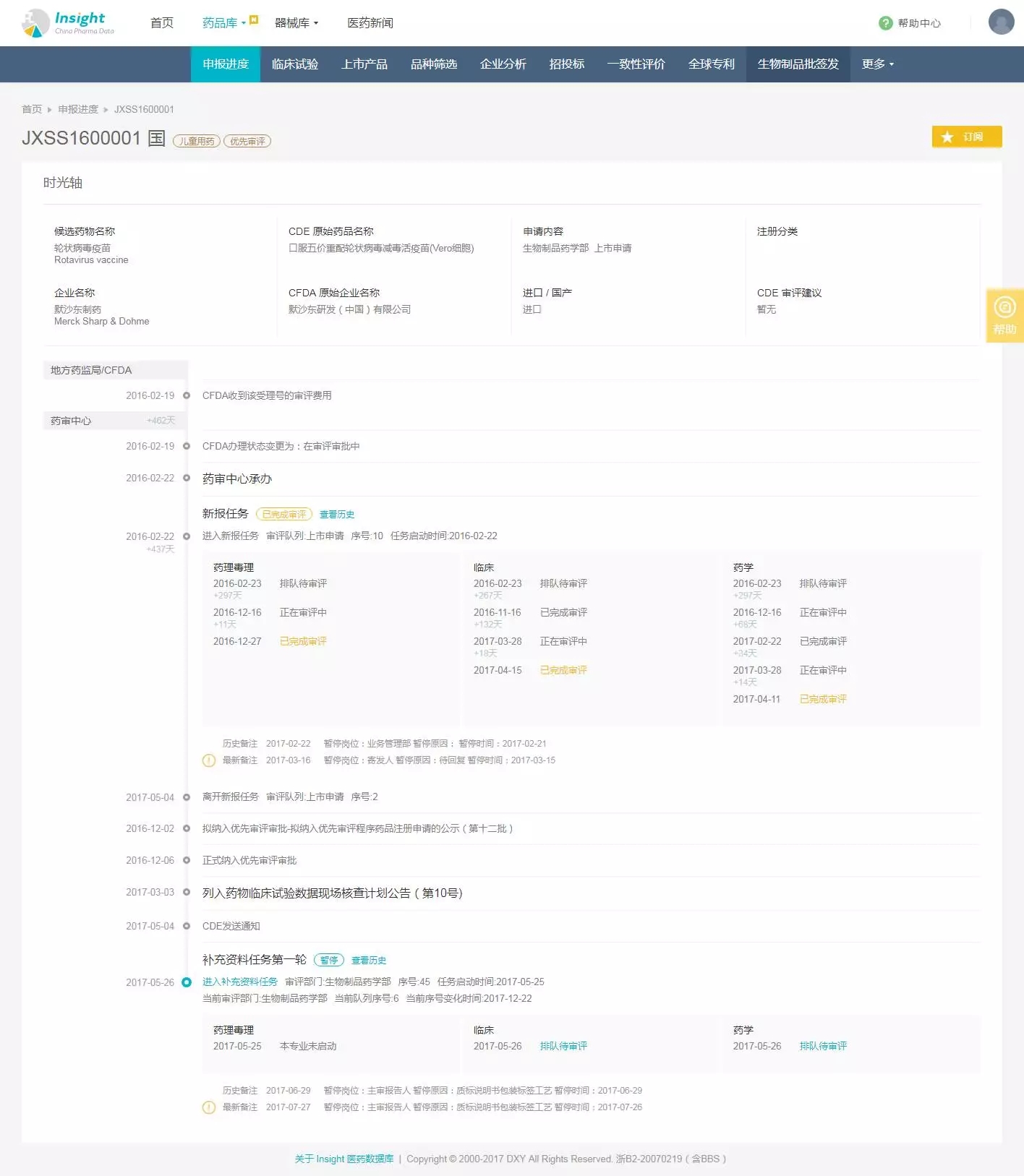 默沙東口服五價(jià)重配輪狀病毒減毒活疫苗 (Vero 細(xì)胞) 在 2016 申請(qǐng)生產(chǎn),該品種作為兒童藥被納入優(yōu)先審評(píng),并被納入 2017 年 1 月 4 日 CFDA 公布的新一批臨床自查名單。據(jù)了解,該疫苗國(guó)內(nèi)由智飛生物代理。相關(guān)品種國(guó)內(nèi)僅有為蘭州生物所的單價(jià)輪狀病毒疫苗上市。