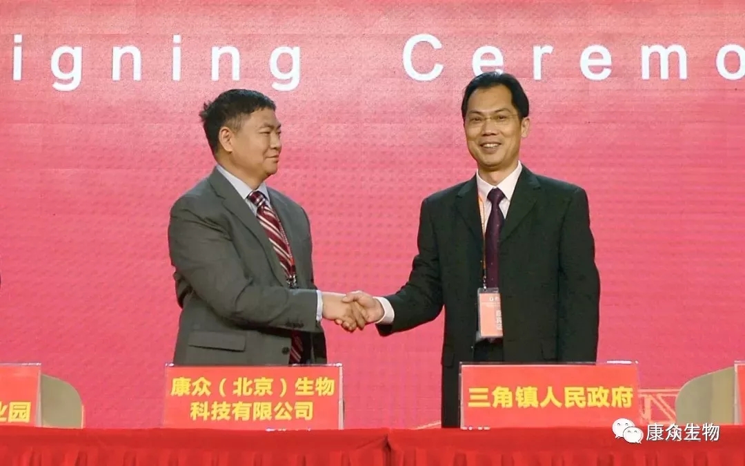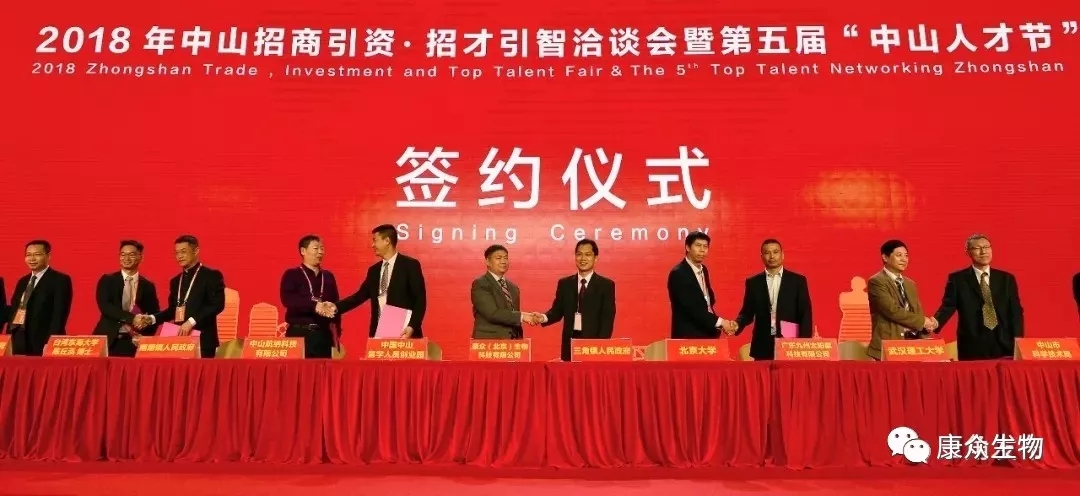 今天上午,2018年中山招商引資·招才引智洽談會暨第五屆中山人才節(jié)開幕式,在中山博覽中心綜合展廳主會場舉行。三角鎮(zhèn)黨委書記黃澤科代表三角鎮(zhèn)人民政府與康眾(北京)生物科技有限公司進行簽約。